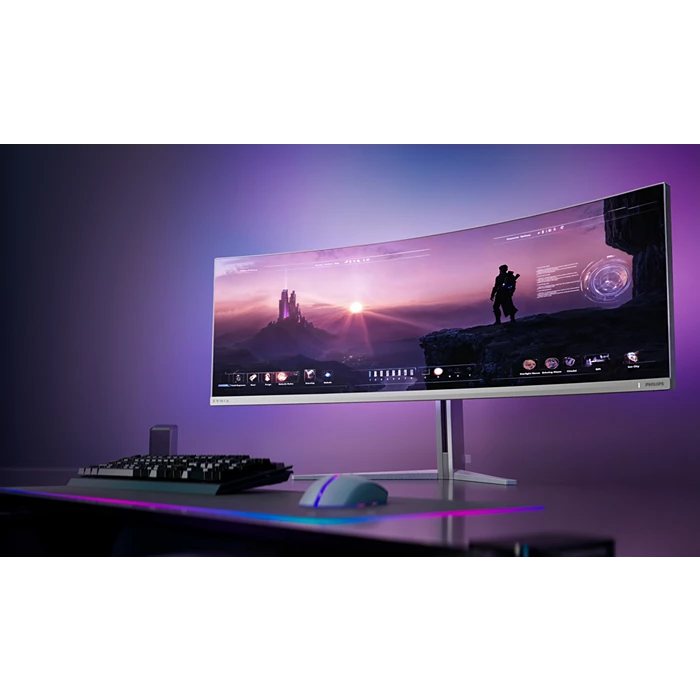 Philips Evnia 49M2C8900L er en ekstrem 49-tommers buet QD-OLED gamingskjerm designet for deg som vil ha maksimal ytelse og total innlevelse. Med Dual QHD-oppløsning (5120 x 1440) får du en ultrabred spillflate som tilsvarer to skjermer – perfekt for både gaming og multitasking.